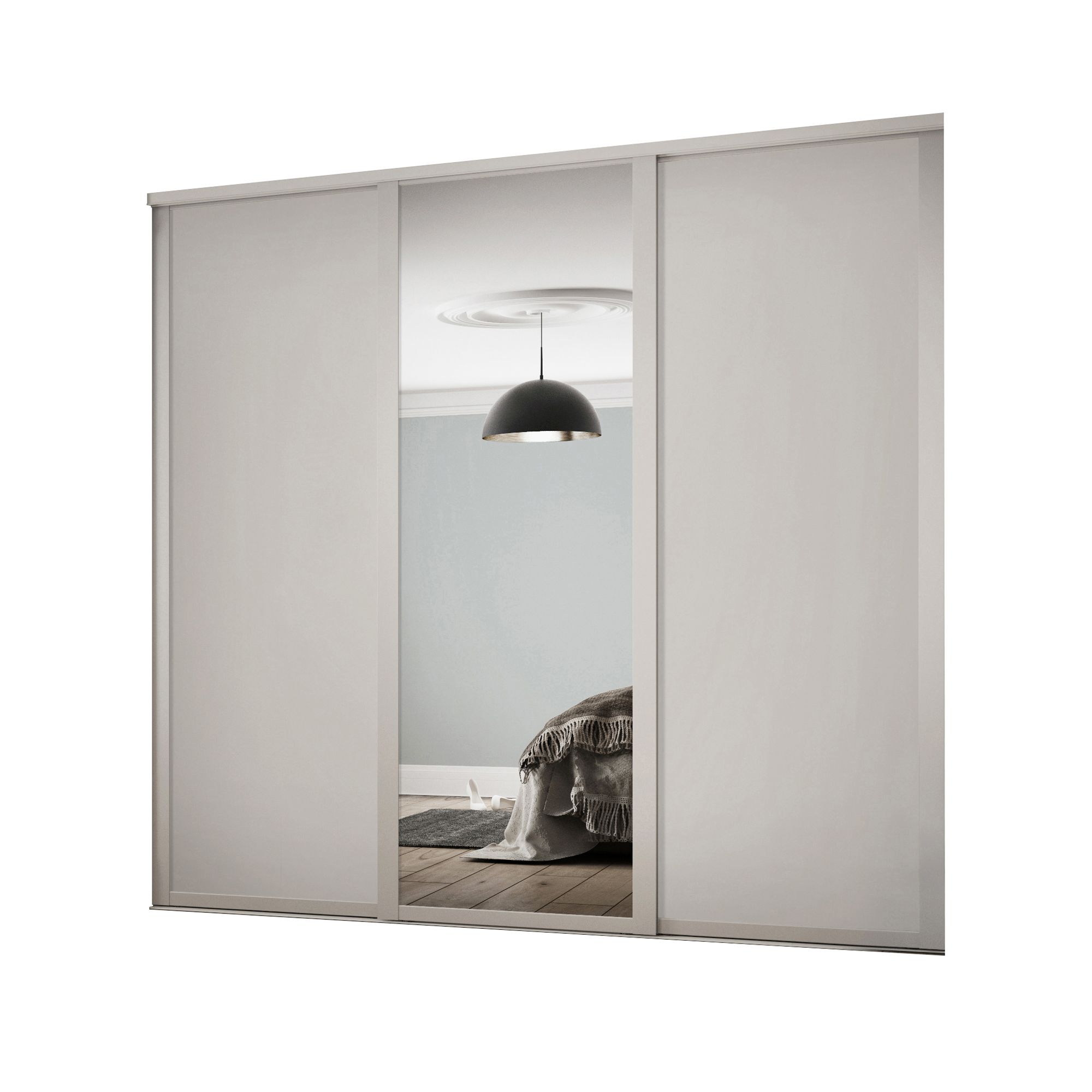 Contemporary Shaker Mirrored Dove Grey 3 Door Sliding Wardrobe Door Kit H 2260mm W 2592mm Diy At B Q